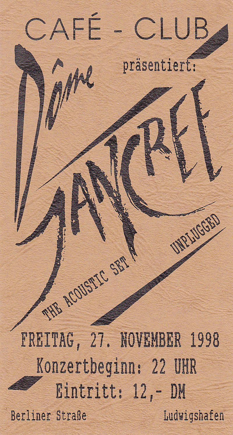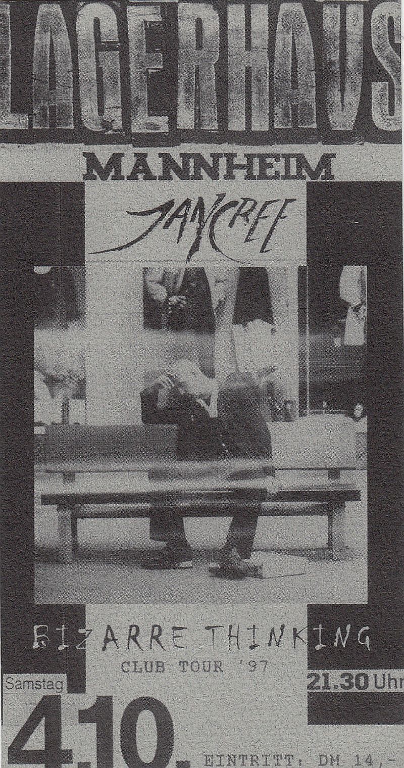 In the context of the release of "Bizarre Thinking" in 1997 and the related tour, Jancree played an in-store gig for the first time. Because of the very good cooperation with the Mannheimer Medienhaus Prinz (in which Jancree even had its own sales stand) and the coordination between the agency "Music Enterprises" and managing director Werner Dormbach), an unplugged appearance on one of the floors of the media house was held on October 11, 1997.