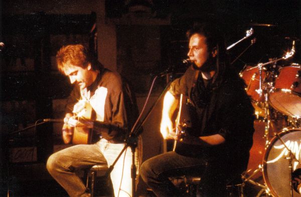 Andreas Klar and Olaf Steffens on acoustic guitars performing "Where The Loving Grows" at the "Out!"
