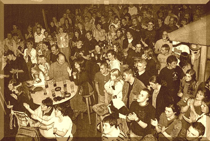As a special addition, a film show with concert films of well-known bands from the genre should be projected on a large screen above the stage - as a kind of support program. Co-organizer Helmer Rick compiled and edited the videos after the band members provided him with videos and concert films from their private collection. There were clips of U2, Thin Lizzy, Rory Gallagher, The Alarm, Big Country, Fish, Gary Moore, Runrig, The Simple Minds and other heroes to be seen and heard that evening, so it was a fitting match to the concert that had been sold out for days in the brewery cellar of the "Woinemer Hausbrauerei". And additionally there was Scottish whiskey and especiallyfor the concert series brewed Stout and Irish Stew served during that evening.