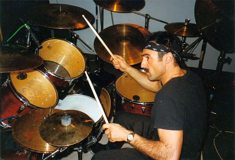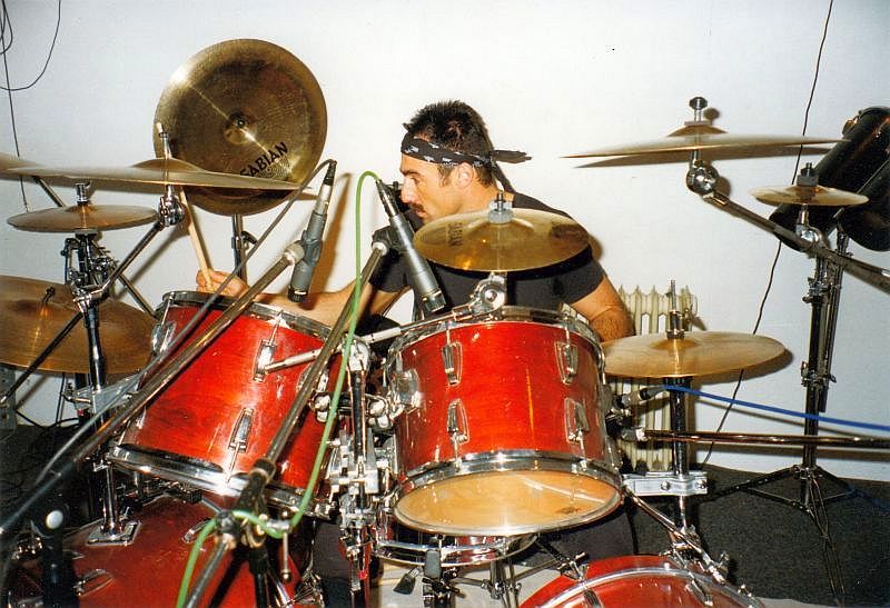 "Klaus Schmid during the drum recording sessions."