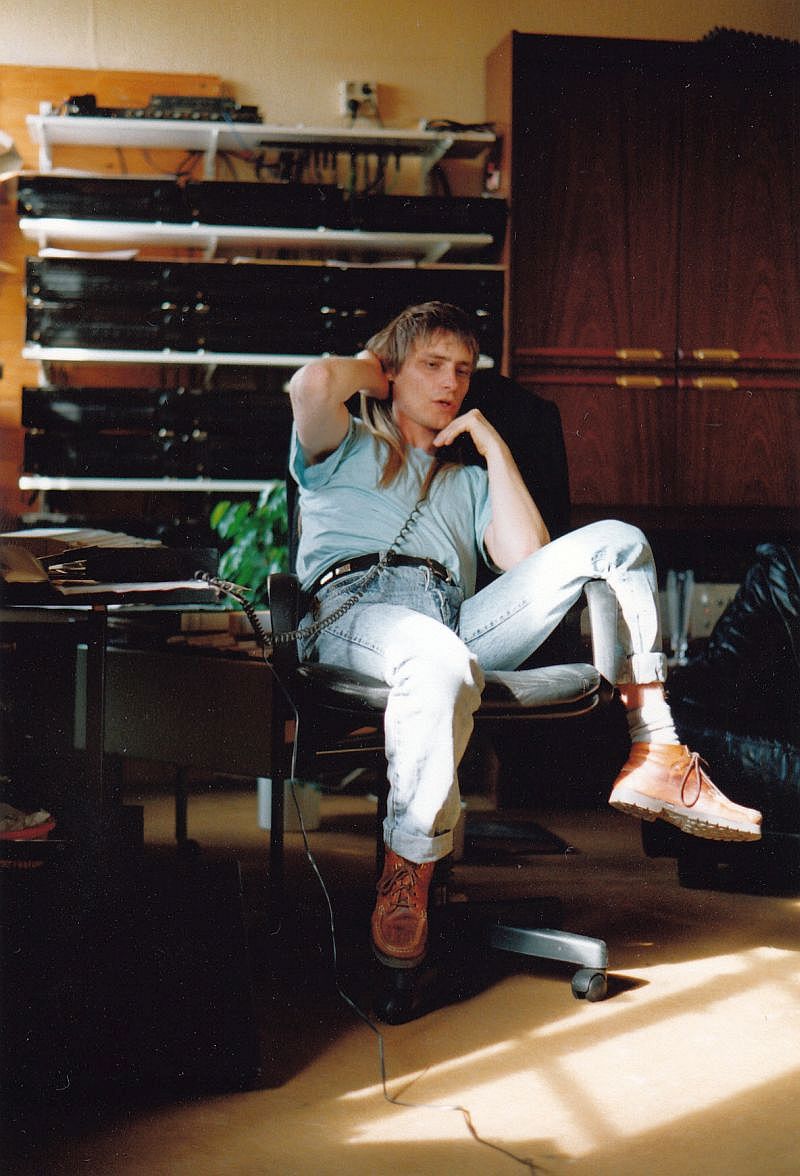 "House Audio-Chef Frank Simml ganz relaxed beim oft stundenlangen Telefonieren mit der halben Musikwelt."