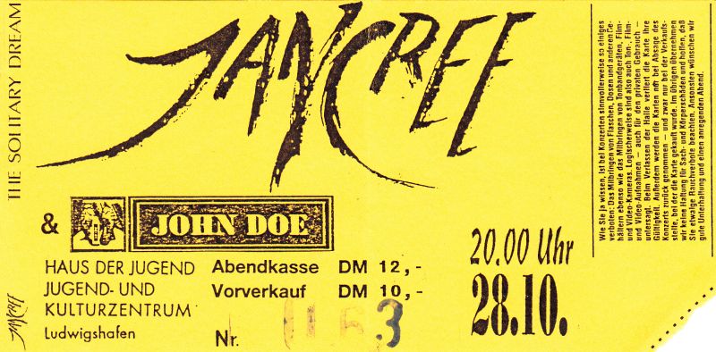 Als Support hatten Jancree sich die - ebenfalls aus Ludwigshafen stammende Band - "John Doe" eingeladen, mit denen man seit einigen Jahren kollegial verbunden war.
